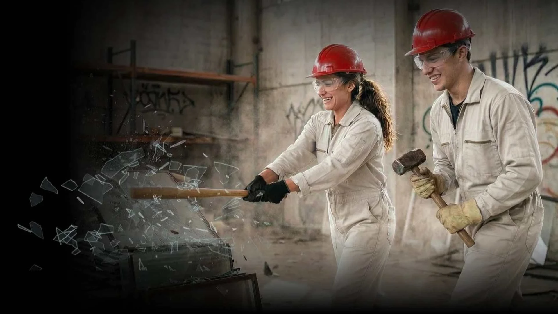 - Орудие: кувалды, биты, молотки, лом